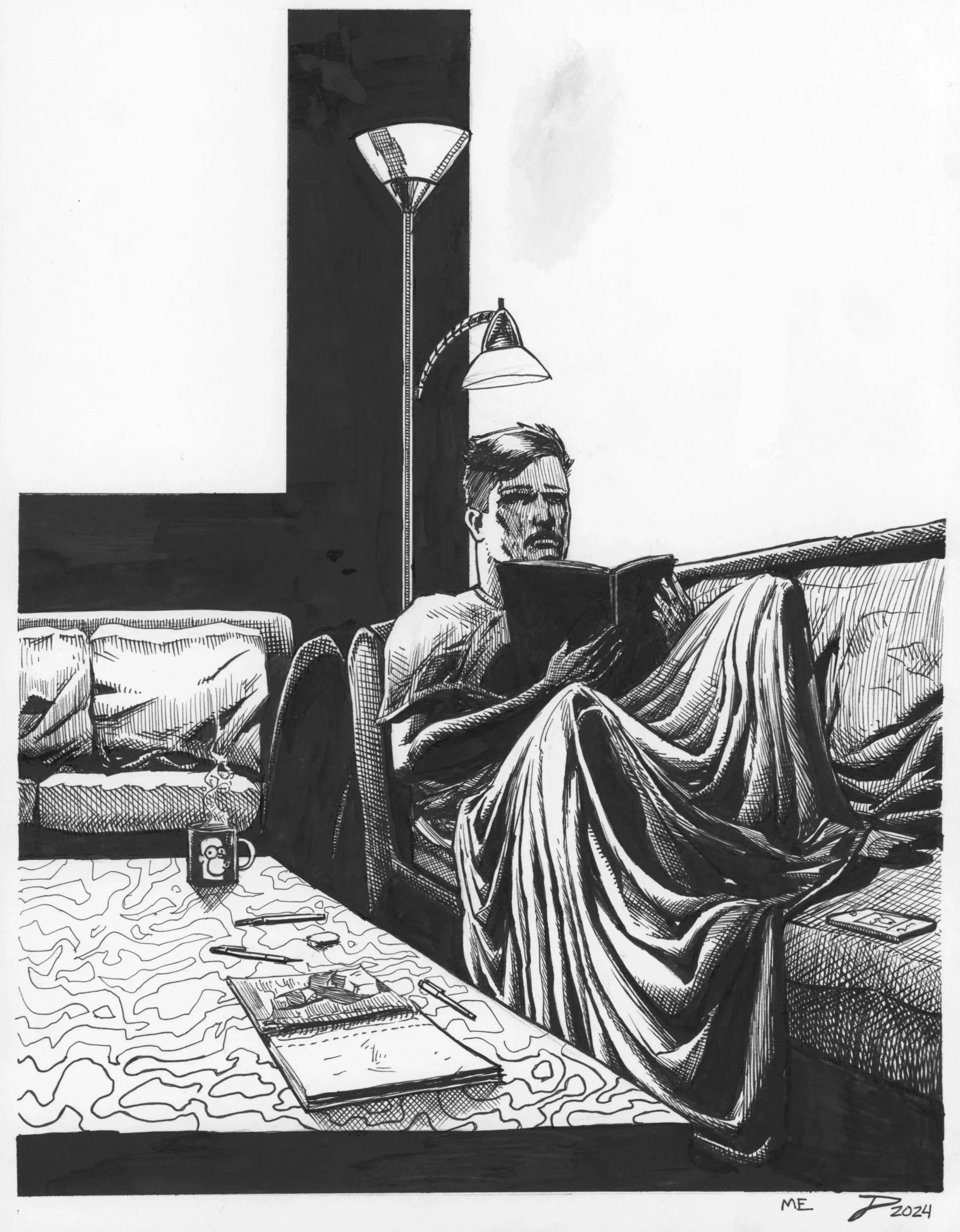 The artwork I create explores Native American history and culture through intricate and bold ink illustrations, influenced by sequential art used in graphic novels. The work represents historical and ongoing effects of colonization on Native life and culture, emphasizing the resilience and strength of American Indigenous people through their rapidly changing culture.